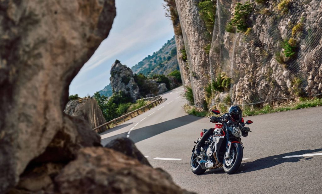 De 1000cc viercilinder lijnmotor is geüpdatet om te voldoen aan de Euro 5+-normen en levert een maximaal vermogen van 201 pk bij 13.500 t.p.m. en 116 Nm koppel bij 11.000 t.p.m. Met de hand gebouwd in Varese, beschikt hij over 16 radiale titanium kleppen, gesmede titanium drijfstangen en DLC-gecoate nokkenassen. De vernieuwde motor reageert directer bij lagere toerentallen en garandeert soepelere prestaties met minimale trillingen.